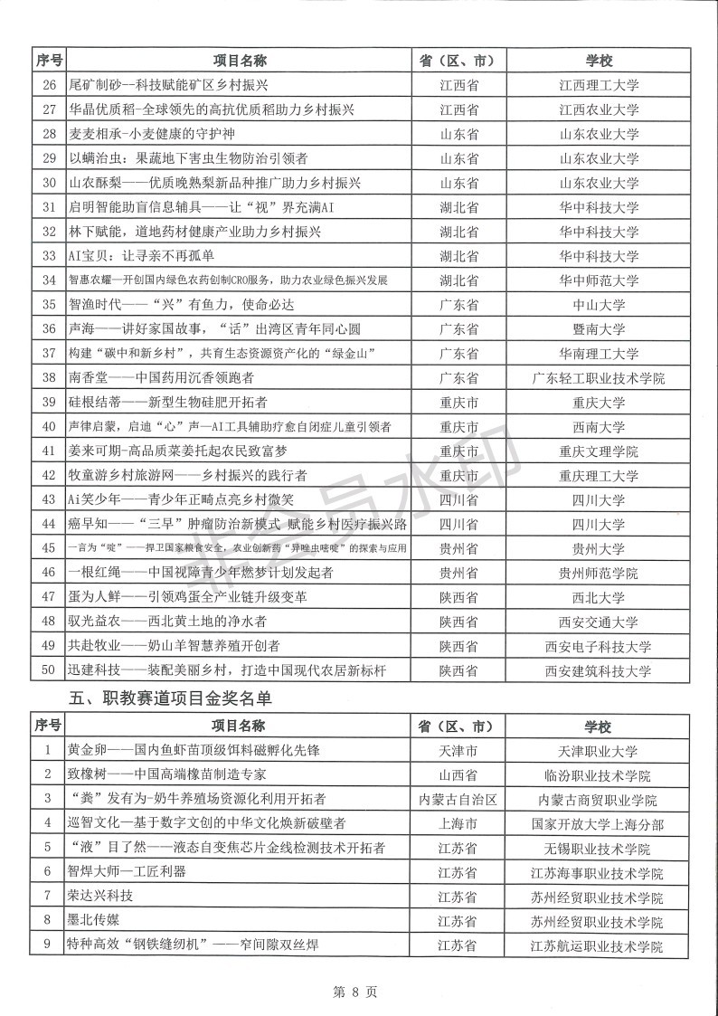 第八届互联网+大学生创新创业大赛获奖名单