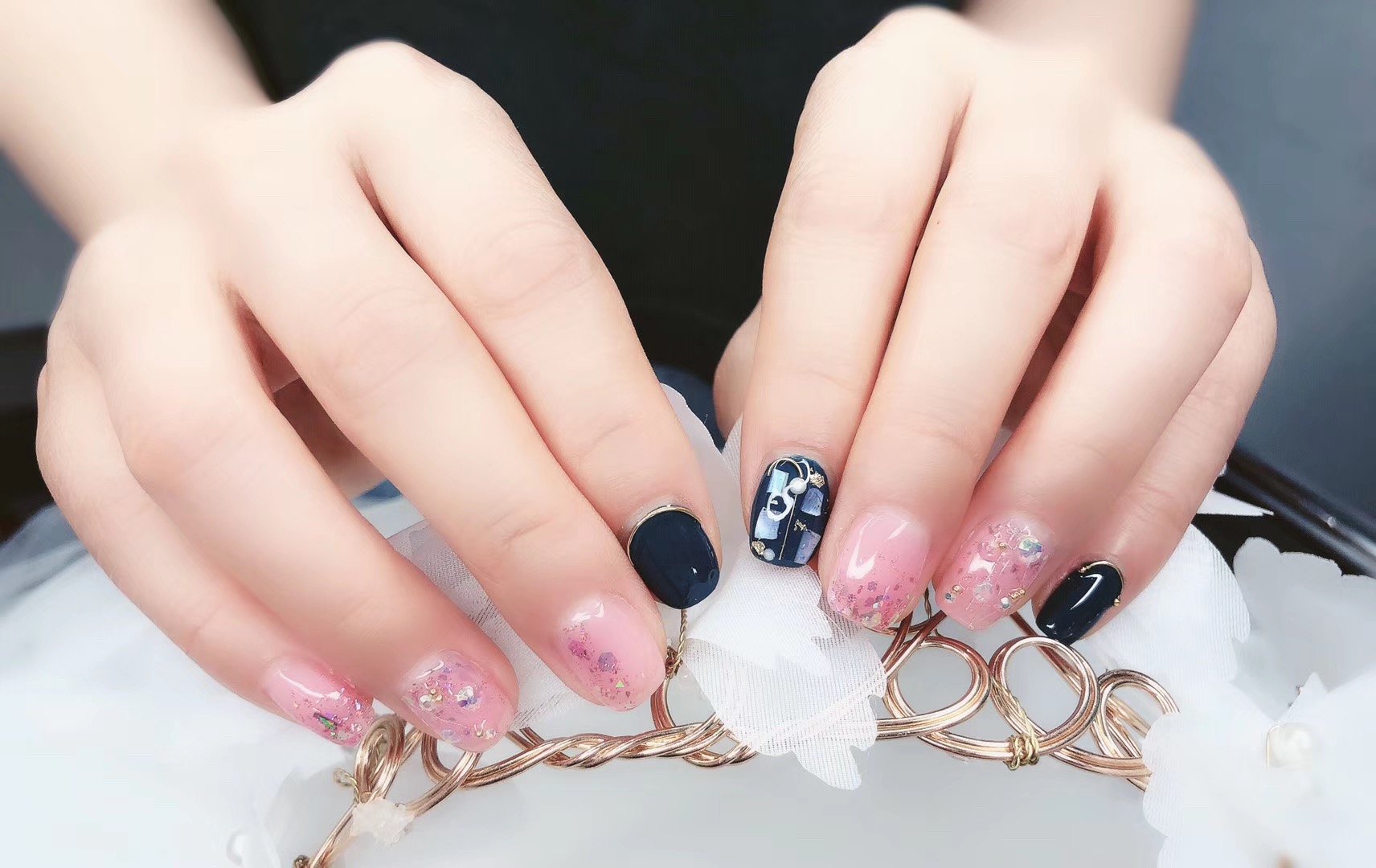 亮片:韩系美甲用得较多,比如心型,星型,菱形亮片等。