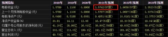 ①市盈率:目前它的股价为47.6元,预测2021年全年每股收益为1.5742元,市盈率=47.6元 / 1.5742元=约30.24。在20~30为正常,很显然,当前股价稍微高了点,可是最好的评判方式是还要看其公司的规模和覆盖率。