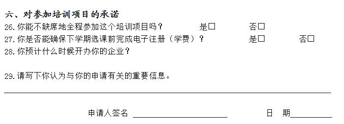 ;SYB培训项目学员申请表如何填写