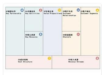 商业模式画布是会议和头脑风暴的工具,它通常由一面大黑板或干脆一面墙来呈现。这块板子按照一定的顺序被分成九个方格,方格的内容如下: