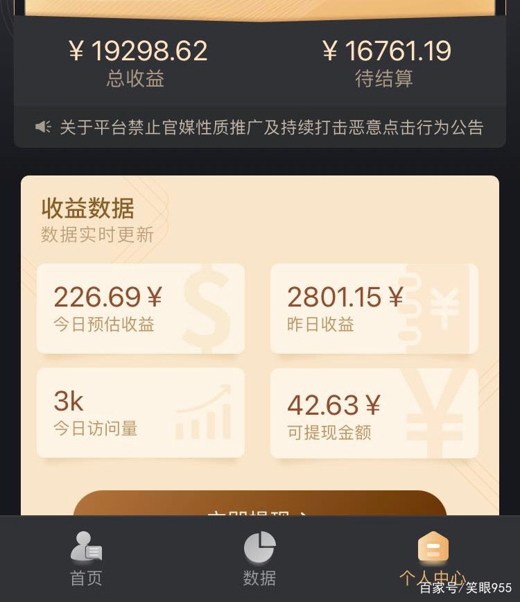 目前小程序变现还处在一个比较初级的阶段,参与者的视频制作水平并不高,剪辑手法也都比较简单。没有非常有效的方法论来获取稳定的高额收益,想要获取很高的收入,运气成本比较大。在抖音里,现在能玩得转星图广告和直播带货的,都是有一定资源积累的机构里的优质账号!这部分账号恐怕在抖音里都不到3%。