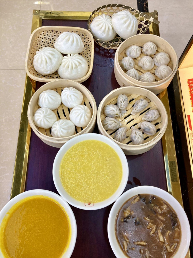 该品牌包子是利用了冰糖桂花糖,白糖,玫瑰糖香拌而成的馅料。每天早上都是排长龙去买包子的景象。
