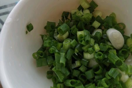步骤3、葱花切好备用。(其实更想吃玉米,香肠,猪肝口味的,但是实在买不到。)