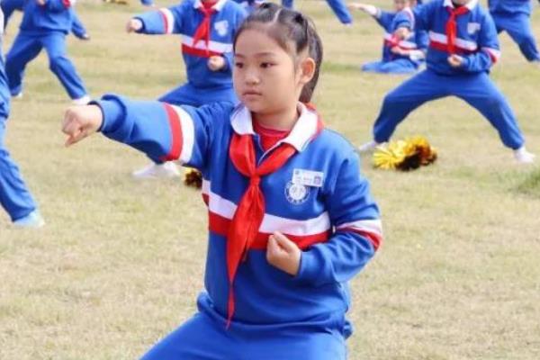 武术操,是武术基本功练习与节拍体操结合起来的一种锻炼形式,该操将武术的基本手型、手法、步型、步法、腿法、身法等进行动作分解,让学生们在学习武术基本功的同时达到强身健体的效果。