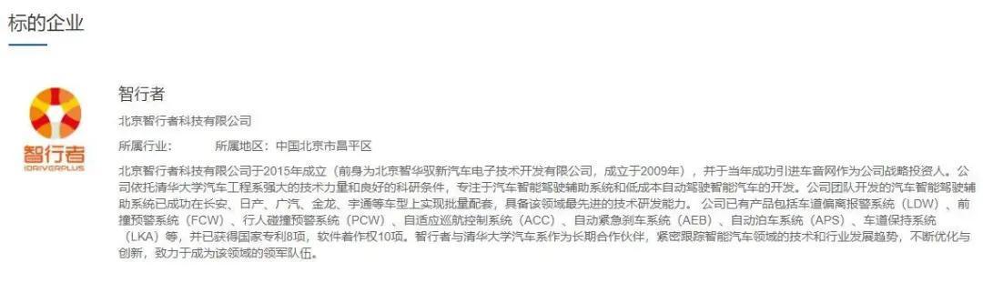 标的企业显示,北京智行者科技有限公司于2015年成立,并于当年成功引进车音网作为公司战略投资人。