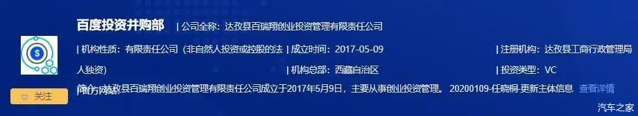 打开投资机构页面发现,百度这家投资公司实体名字叫达孜县百瑞翔创业投资管理有限责任公司成立于2017年5月9日,主要从事创业投资管理。