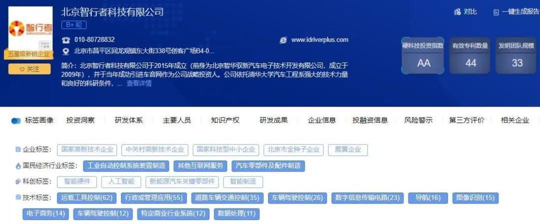 从智行者企业页面看到,他的企业标签从国家高新技术企业、国家科技型中小企业到展翼企业,拿到科技水平的背书可谓丰富。